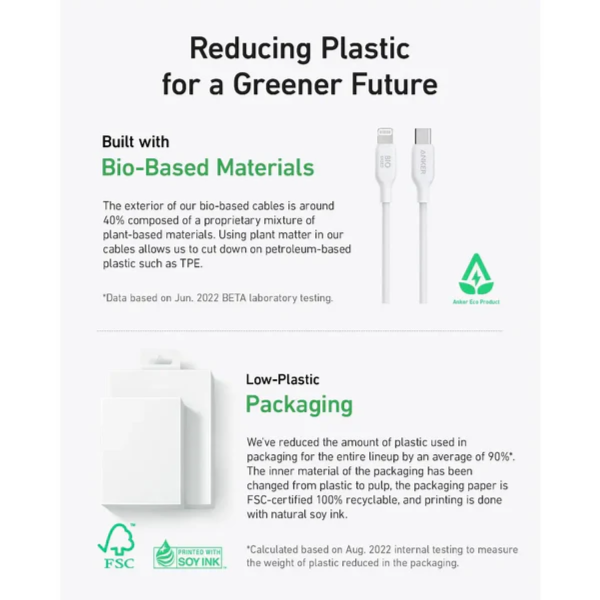 ✔️ Bio-Based Design: The exterior of the cable body is built using bio-based materials from plants like corn and sugar cane.